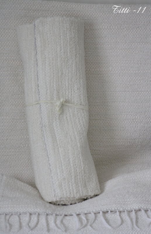 Eräästä pöydästä löysin kaksi kaunista, valkoista pitkää kapeaa mattoa. Puhtaat ja siistit, ja hinta vain 6,00€/kpl.